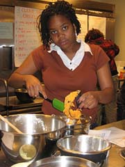 On September 22nd and September 23rd Brainfood opened it's kitchen doors for its 10th year of after school programming. The kitchens at our Columbia Heights and Chinatown locations were once again full of energetic youth ready to cook, bake, eat, learn and serve! This year Brainfood set new records with the most students who signed up to be part of our programs. We tried to fit as many students as we could into our 4 classes although we were forced to put some students on the wait list. With over 90 students enrolled, Carina and I begun the process of grocery shopping for some of the largest classes we've even had at Brainfood. On the first day of class, our 4 classes combined baked over 29 batches of Oatmeal Chocolate Chip Cookies - that's over 370 cookies! We have just finished our 5th week of class and have already tackled how to measure "the Brainfood way," lowfat & vegan baking, working with pizza dough, making healthy sandwiches, and learning knife skills. We are off to a yummy start!